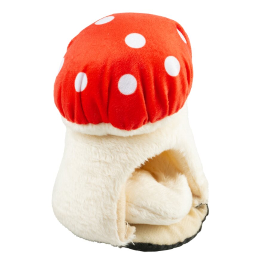 Paddestoel huis pluche 8,5x8,5x11cm rood/wit
